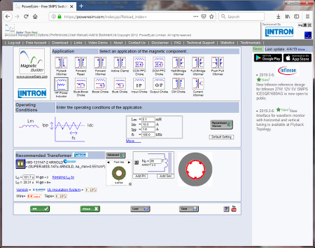 | PowerESim is a powerful tool for design of SMPS power supplies as well as the the SMPS transformer. PowerEsim runs directly in your webbrowser. Magnetic Builder, a module of PowerESim is used to design a SMPS transformer. |